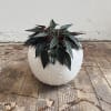 Matera colgante de cerámica esmaltada en forma de esfera con puntos en relieve ideal para plantas colgantes. Todas las piezas son fabricadas a mano por lo que no vas a encontrar dos iguales.
